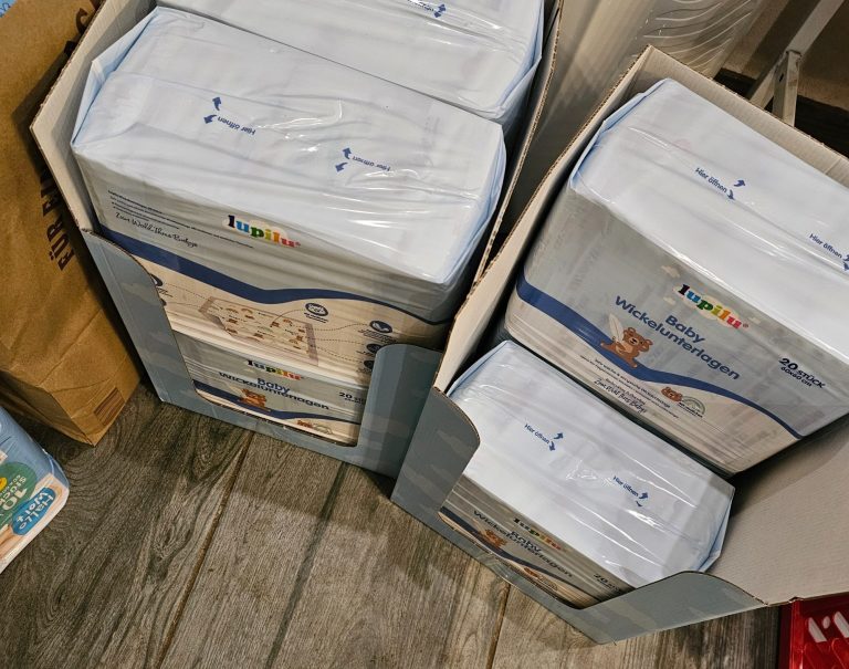 Danach ging es wieder los, die Kinder ausgeschlafen, wir ins geliehene Auto, um den Wagen vollzutanken und den dringend notwendigen Einkauf zu erledigen. Dabei mutierte ich bei Lidl zur Großeinkäuferin für Hundehygiene: Ich kaufte wortwörtlich alle Wickelunterlagen, die sie hatten – 8 Pakete à 20 Stück. Wer mich da beobachtet hat, dachte sicher, ich würde eine komplette Kinderkrippe eröffnen.