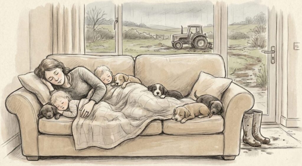 Ich tippe das hier ganz leise, fast schon in Zeitlupe. Warum? Weil gerade ein kleines Wunder geschehen ist: Absolute Stille. Meine drei Kinder und die sechs verbliebenen Welpen machen ausnahmsweise alle zur exakt gleichen Zeit Mittagsschlaf. Wer mich kennt, weiß: Die Chance darauf ist geringer als ein Sechser im Lotto. Ich nutze diese heilige Atempause jetzt sofort und liege auf der Couch.