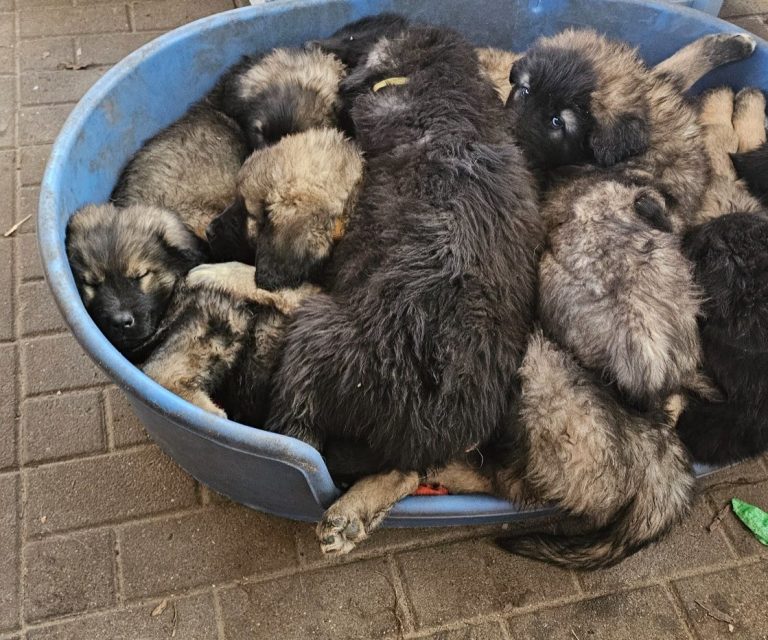 Doch wenn man dann völlig durchgefroren und mit schmerzendem Knie reinkommt, gibt es diese Momente, die einen sofort entschädigen. Plötzlich sieht man einen riesigen, wuselnden Haufen aus Fell, Pfoten und Ohren. Alle zehn verbliebenen Welpen hatten offenbar gleichzeitig die Idee, dass es Zeit für ein Gruppenkuscheln ist – und zwar alle zusammen in Mamas Körbchen. Wie sie sich da in- und übereinander gestapelt haben, nur um irgendwie alle reinzupassen, war ein Bild für die Götter.